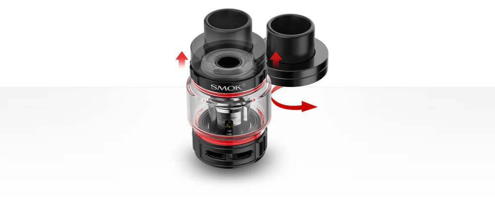 Smok'un özel TFV9 atomizer ile birlikte gelir. Bu tank, 6.5 ml'lik bir kapasiteye sahiptir ve çift hava akışı kontrolü sunar. TFV9 atomizer, Smok'un V9 coil ile çalışır ve bu coiller yoğun buhar ve aroma sağlar.